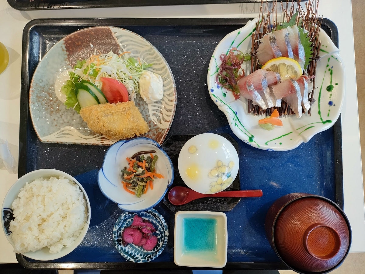 長崎県松浦にある松浦魚市場の食堂で、アジ定食を食べた。