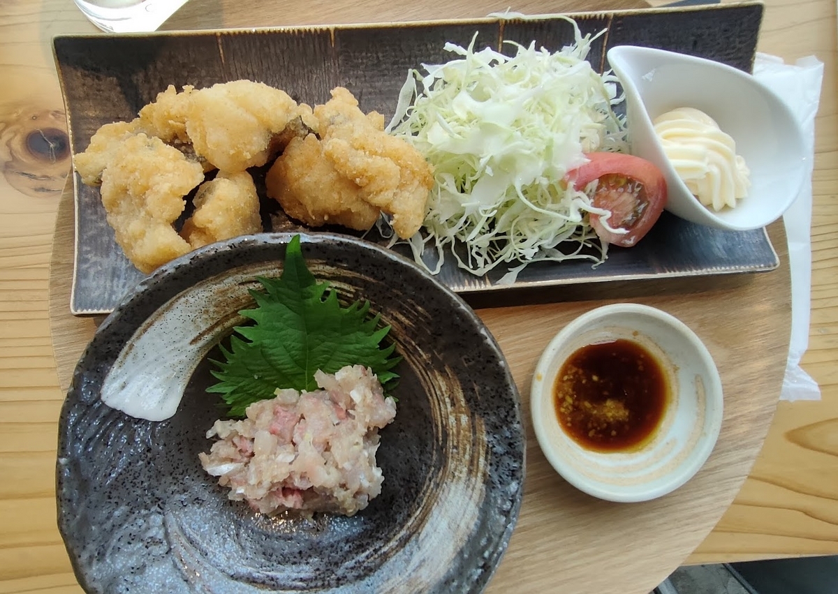 生臭さは全くなく、大きめのぶつ切りで、コリコリとした食感と塩味が効いている。