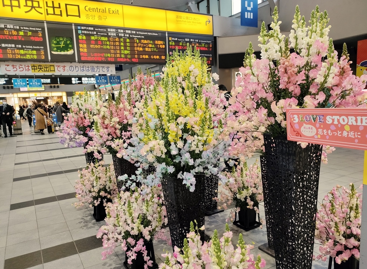 四万十に行く途中の岡山駅。もう春だ