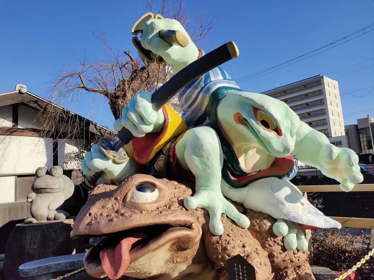 「ガマ侍」長野県松本市の中心街ナワテ通りにある